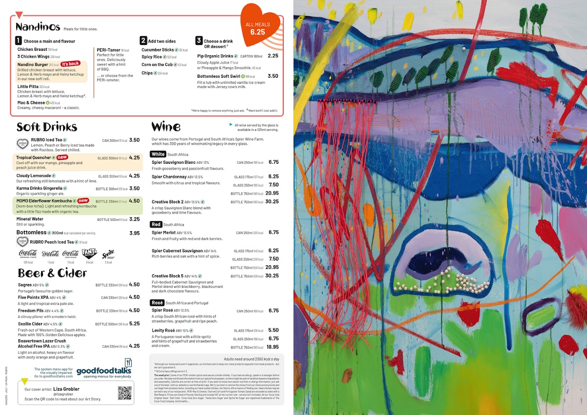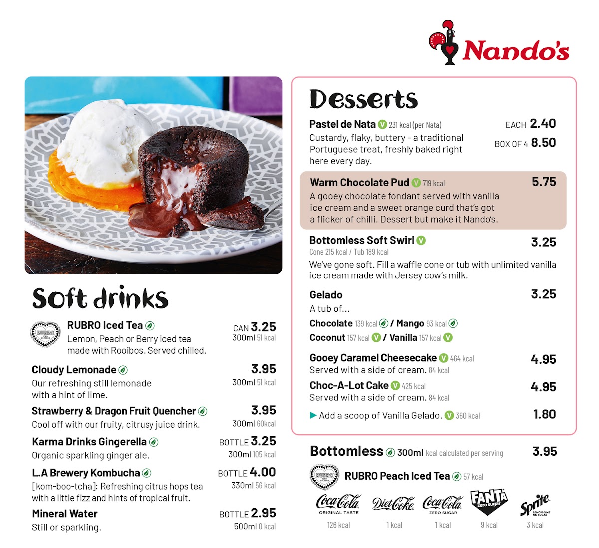 The Nando's Cheltenham menu is a delightful selection of dishes that cater to a variety of tastes. Whether you're in the mood for a classic Peri-Peri chicken or something a bit different, such as the grilled chicken wraps, salads, or even a veggie burger, Nando's has something for everyone. Their signature Peri-Peri chicken, available in a range of heat levels, allows guests to customize their spice experience, making it suitable for those who enjoy a mild flavor as well as those who love to feel the heat.